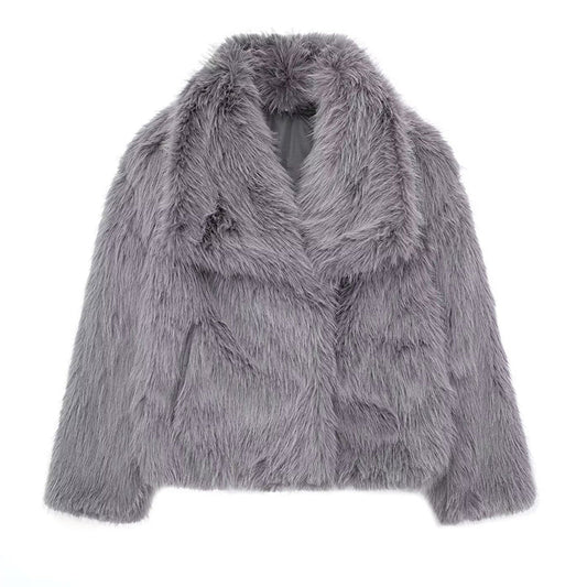 Women’s Short Faux Fur Coat with Oversized Collar